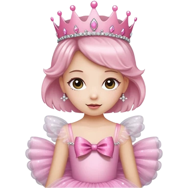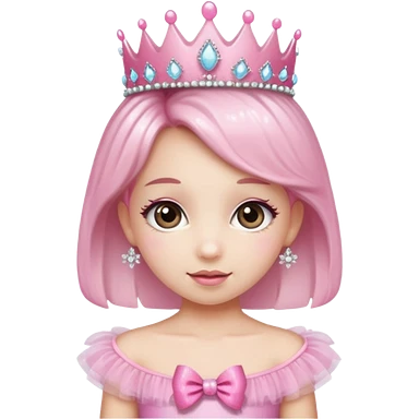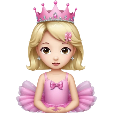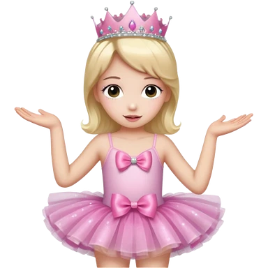 cute girl wearing a tutu, tiara, and a pink glittery bow emoji