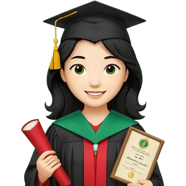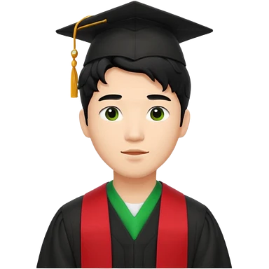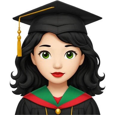College Graduate asian black hair with wavy hair long with black red stash with green benilde on the middle emoji