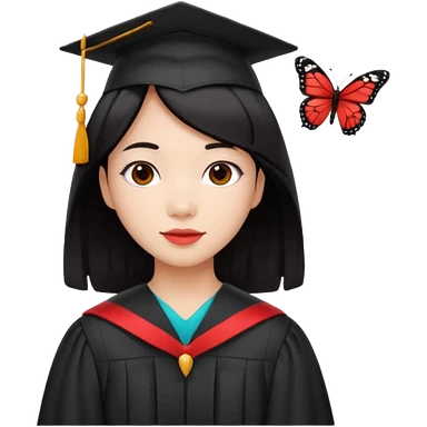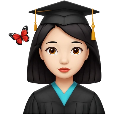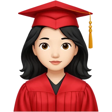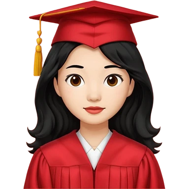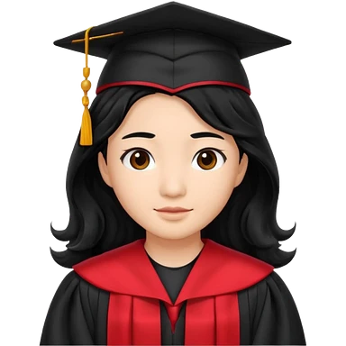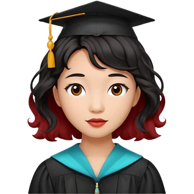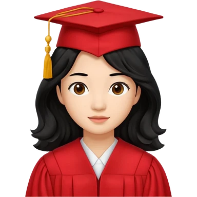 Graduate asian black hair with wavy hair long with red emoji