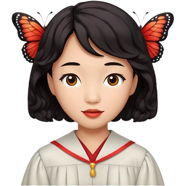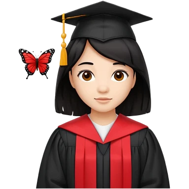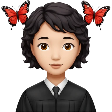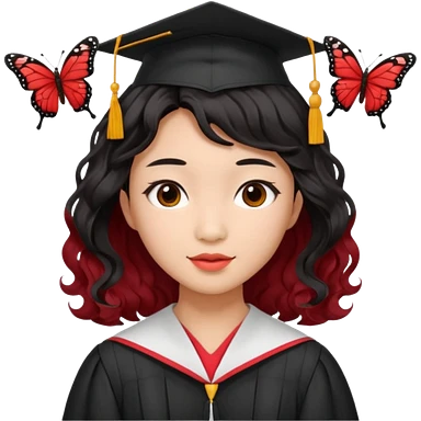 Graduate red asian black hair with wavy butterfly haircut emoji
