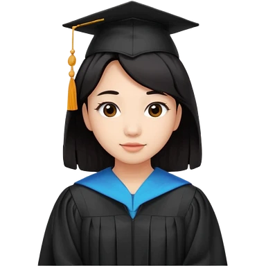 Graduate asian black hair with wavy hair long emoji | AI Emoji Generator