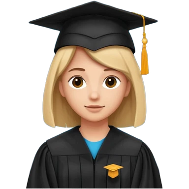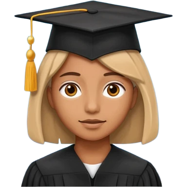 An emoji representing a brunette girl with green eyes and long, slightly wavy hair. She wears a black graduation cap on her head, symbolizing academic success. Her expression is soft and proud. emoji