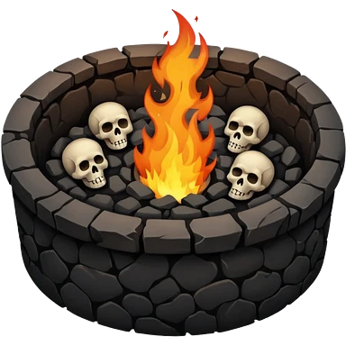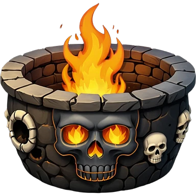 A circular pit (looking top down) with fire and skulls inside, in a dark and gritty style like your bleeding skull art emoji