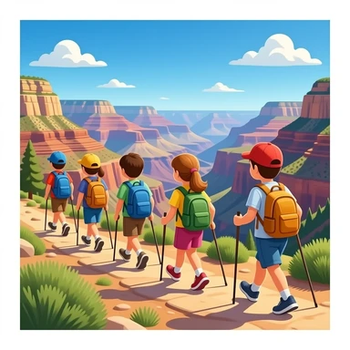 group of kids hiking down grand canyon emoji