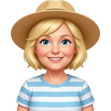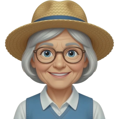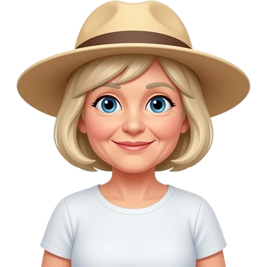 Grandma blond with straw hat and chin tilted up emoji | AI Emoji Generator