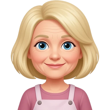 grandma with very sort blonde hair cooking with no glasses and brown eyes emoji