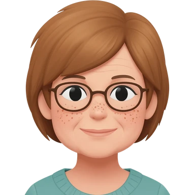 grandma, short hair, tan, brown hair, glasses, freckles emoji