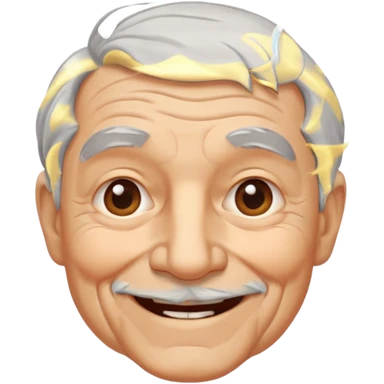 Grandma with right blue eyes white glitter hair, thin, holding a balloon that says Lala loves you! emoji