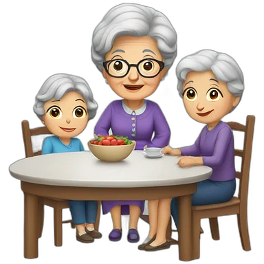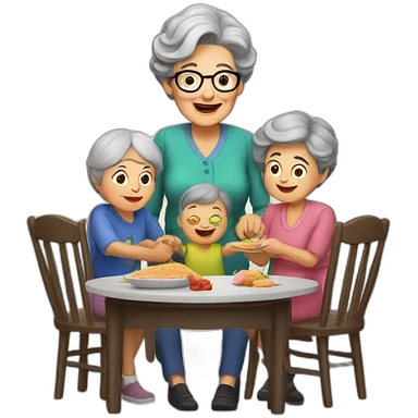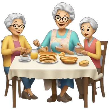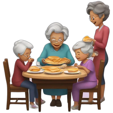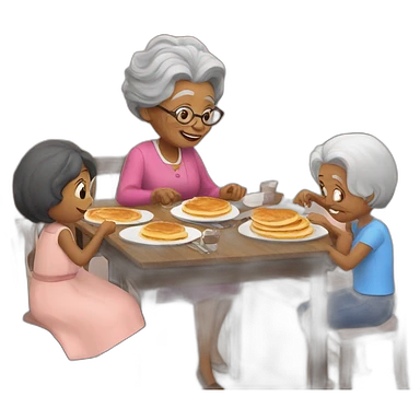 Granny with family in the table eat pancakes emoji | AI Emoji Generator