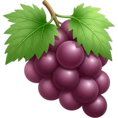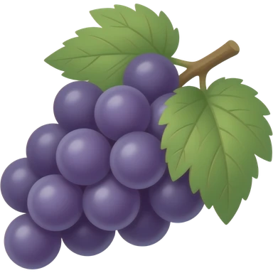 A high-res, transparent-background emoji Of a realistic small bunch of deep purple grapes With a green stem and a touch of leaf emoji