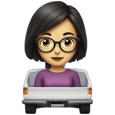 Red headed lady with glasses and blue eyes driving snowplow truck emoji