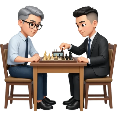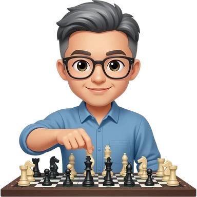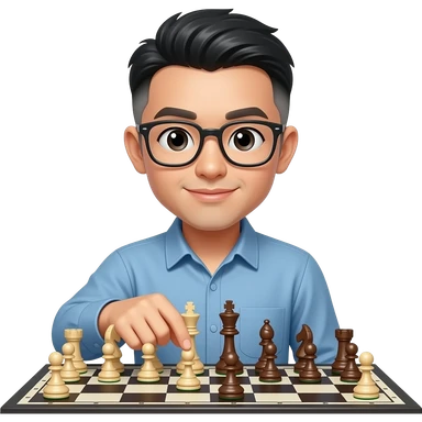 Sexy Asian man bowl cut gray hair with glasses playing chess emoji