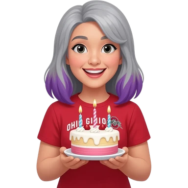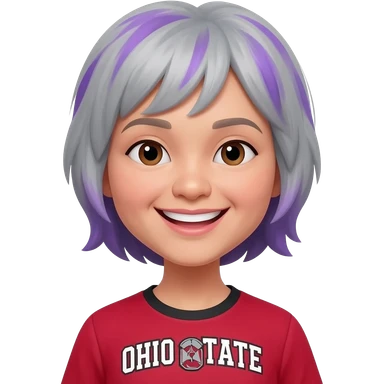 Gray and purple hair woman ohio state shirt happy birthday emoji | AI Emoji Generator