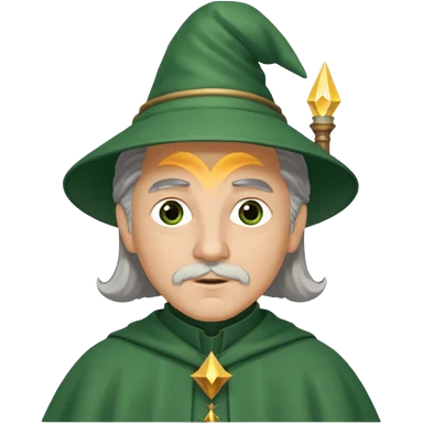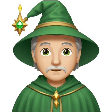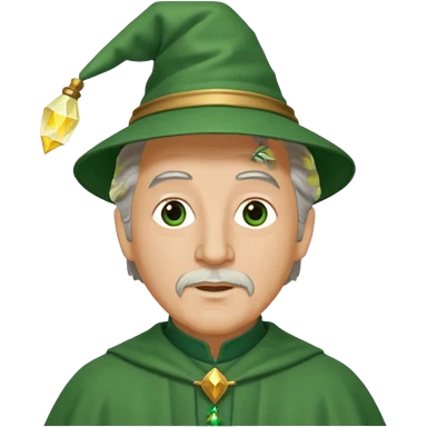 The Wizard from The Wizard of Oz with light skin, brown eyes, grey hair, green outfit emoji