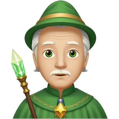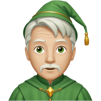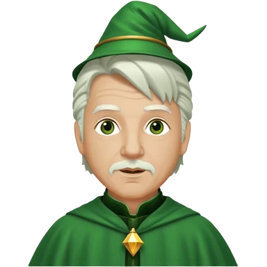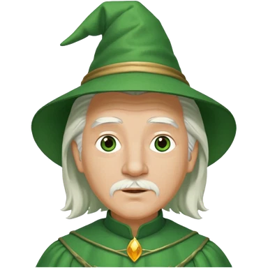The Wizard from the Wizard of Oz with white hair, green eyes, green outfit emoji