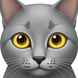 White scottish lop-eared cat with gray face nose and gray ears, blue eyes emoji