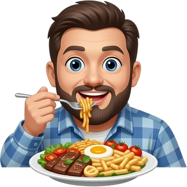 Standard emoji smiley with mouth full of food, cheeks blown up like a hamster, wide-open eyes emoji