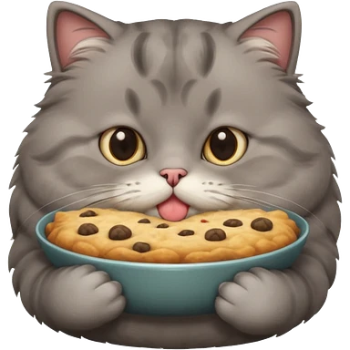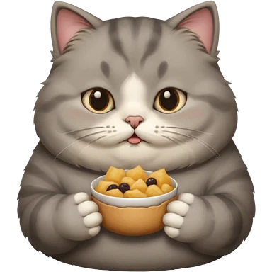 Gray cute cat eating food with cheeks full fat very very fat emoji | AI Emoji Generator