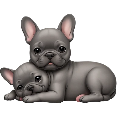 gray french bulldog alongside a dark brindle French bulldog, best friends emoji