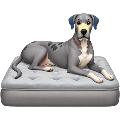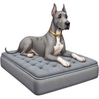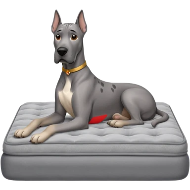 Gray Great Dane on king size mattress floppy ears emoji | AI Emoji Generator
