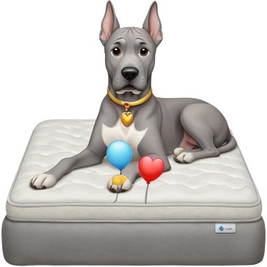 Gray Great Dane on king size mattress emoji
