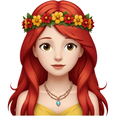 Cheerful blonde princess with wavy hair and light blue dress, wearing crown emoji