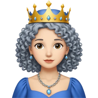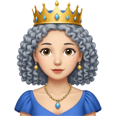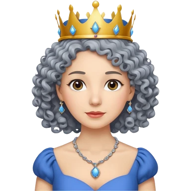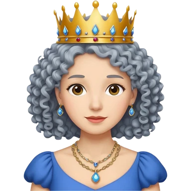 gray curly hair ladies with necklace and crown, with blue dress emoji