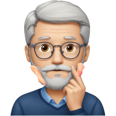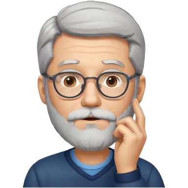 Gray haired man with glasses and a beard with his hand on his chin emoji
