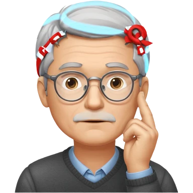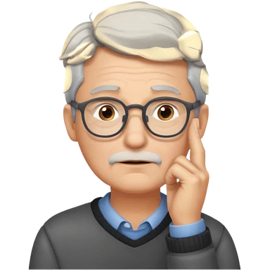 Gray haired man with glasses with his hand on his chin thinking emoji | AI Emoji Generator