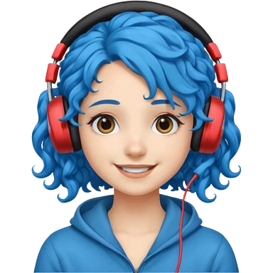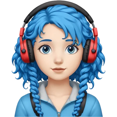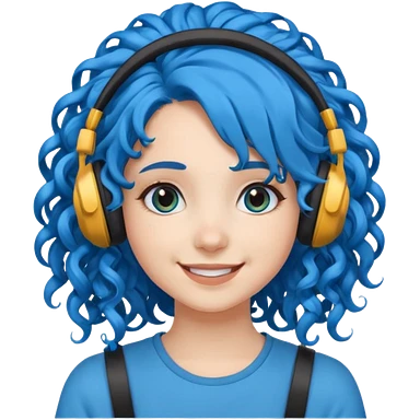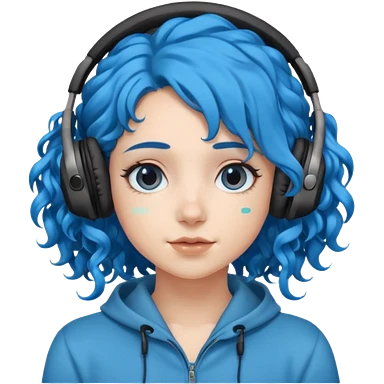 blue haired earringed heaphone wearing girl very very curly long haired emoji
