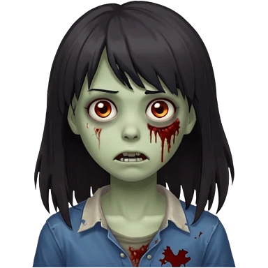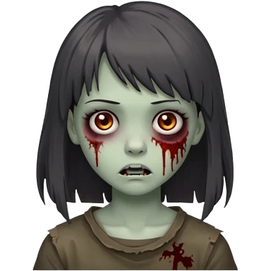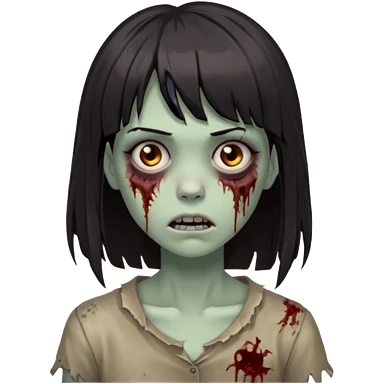 zombie girl dark hair long her shoulders bangs and ragged haircut gray eyes emoji