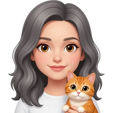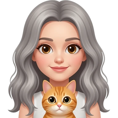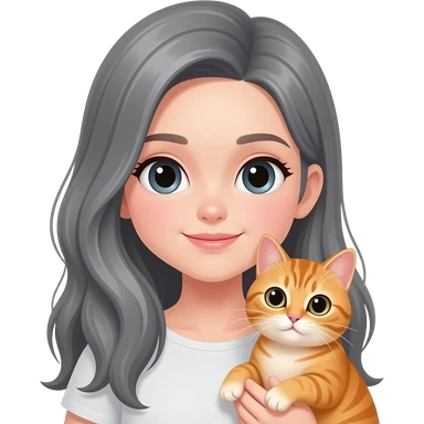 Gray long hair no bangs parted on side girl holding orange cat emoji | AI Emoji Generator