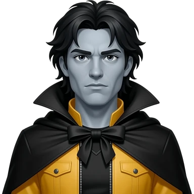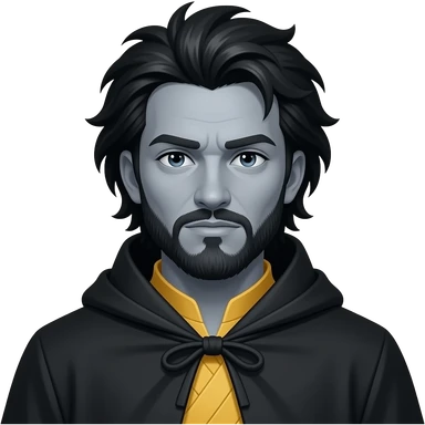 Gray man with black crazy hair with a black cloke and yellow peuples emoji | AI Emoji Generator
