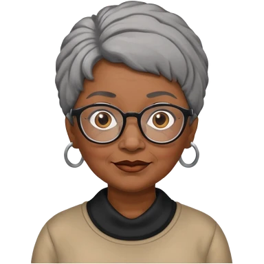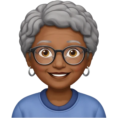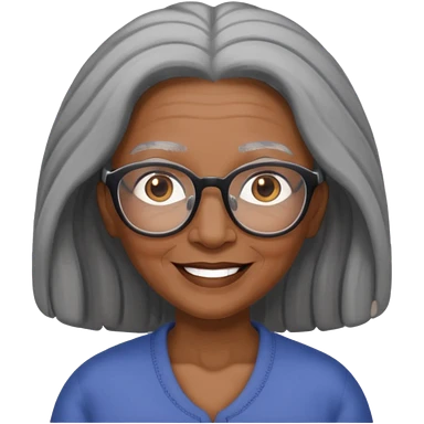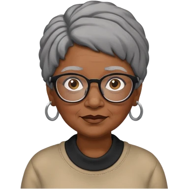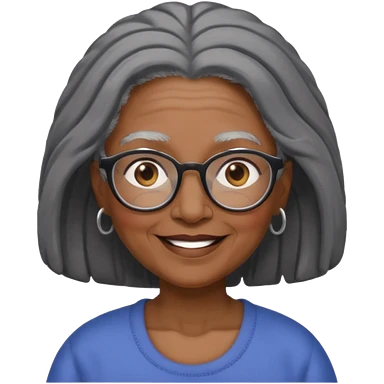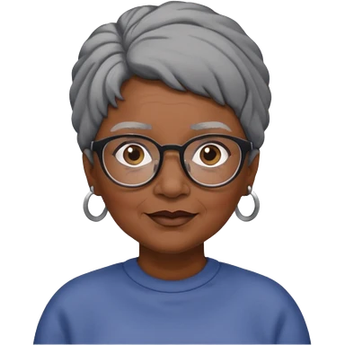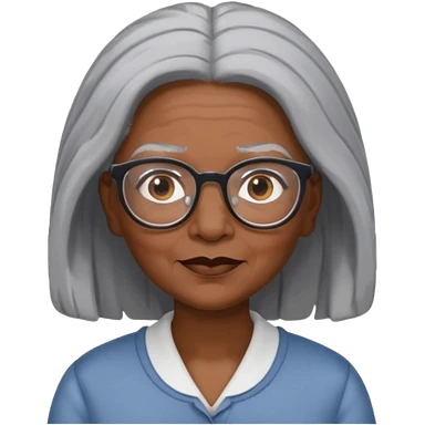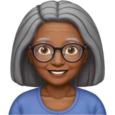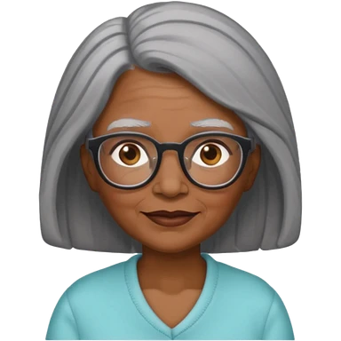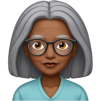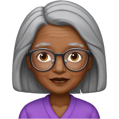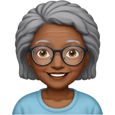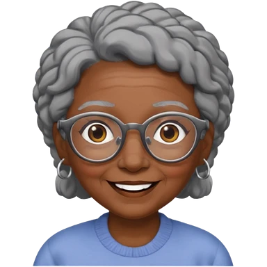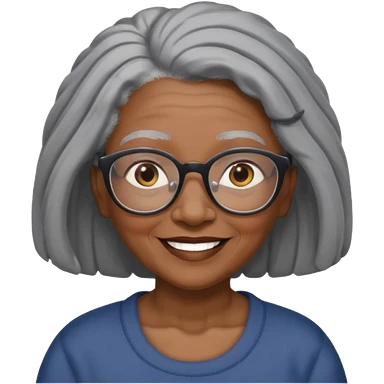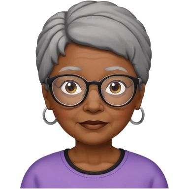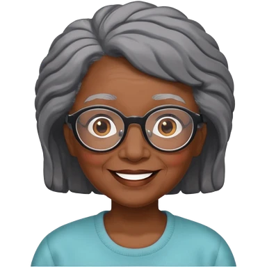 emoji of a black grandma women with black and gray hair with glasses and brown eyebrows emoji