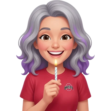 Gray and purple hair woman ohio state shirt happy birthday emoji