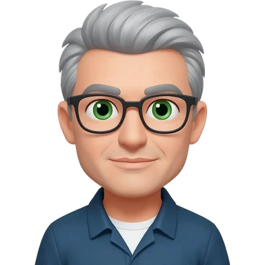 gray hair, no beard, glasses, green eyes emoji