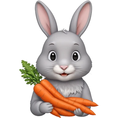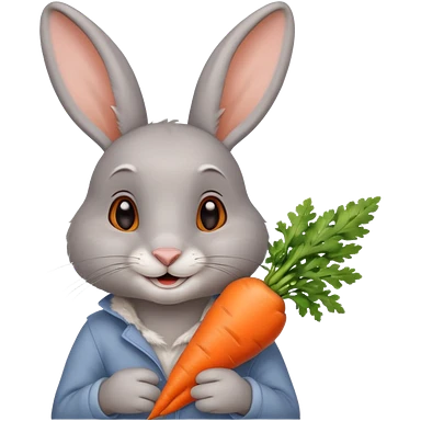 Gray rabbit holding carrot, cute smile, half body emoji | AI Emoji Generator