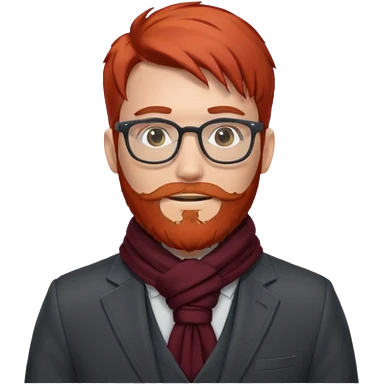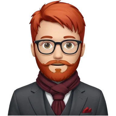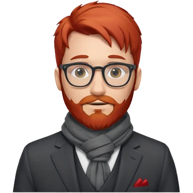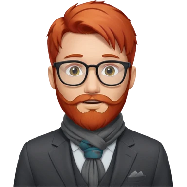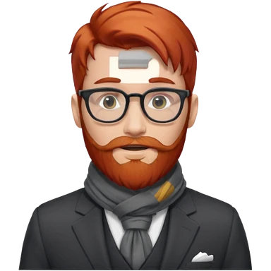 gray scarf, male, beard, red hair, with suit, glasses emoji