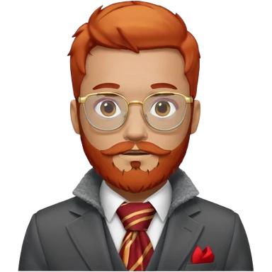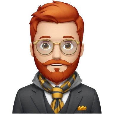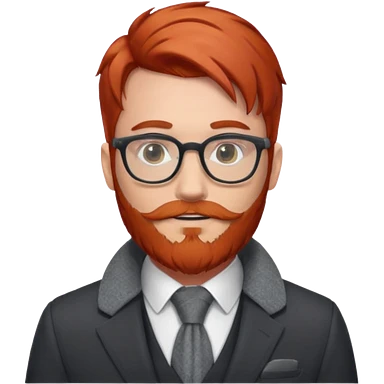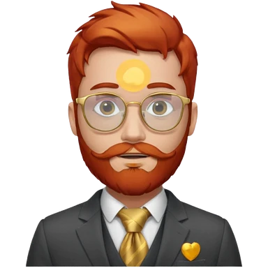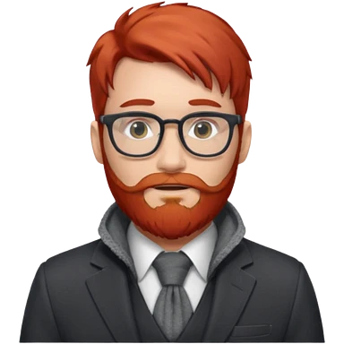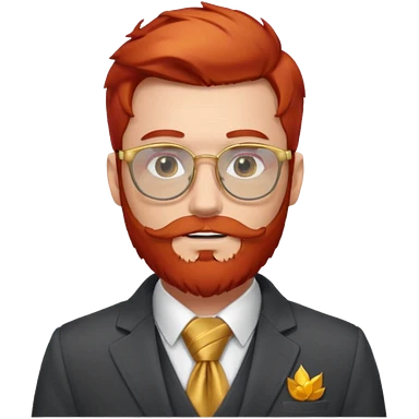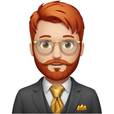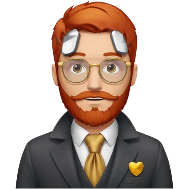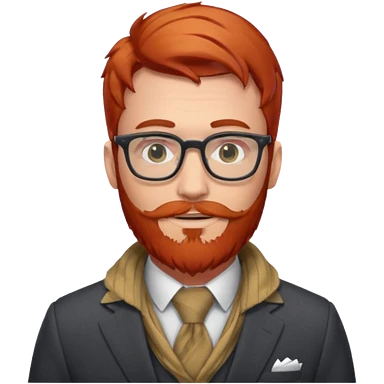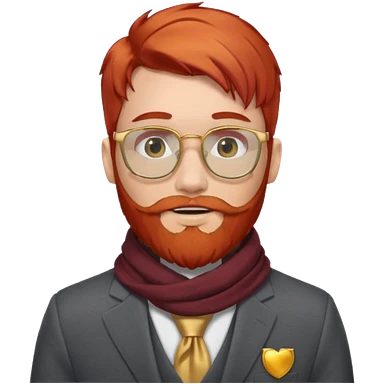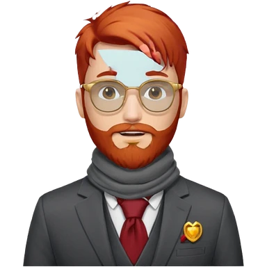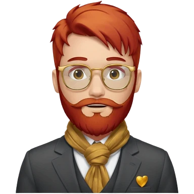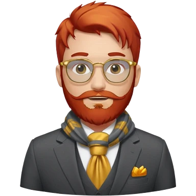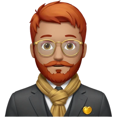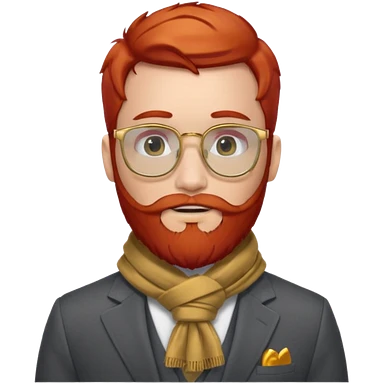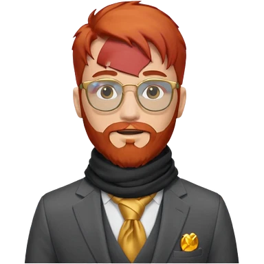 gray scarf, male, beard, red hair, with suit, gold glasses emoji