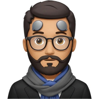 gray scarf male beard hair with suit glasses emoji | AI Emoji Generator