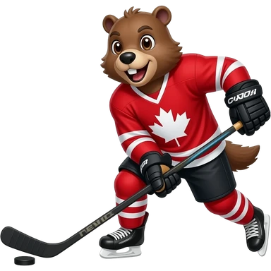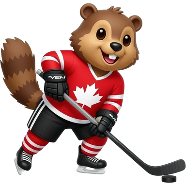 beaver playing hockey with a red canada jersey on make sure his tail is showing emoji