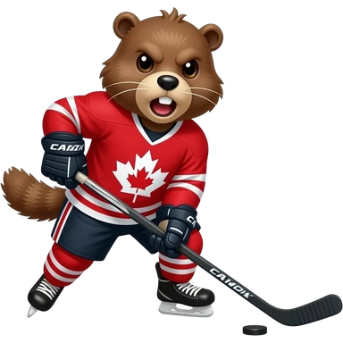beaver playing hockey with a red canada jersey on make sure his tail is showing and make him look mean emoji