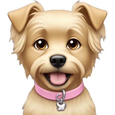 Small blonde dog with shorter wiry hair on its back and a baby pink collar emoji