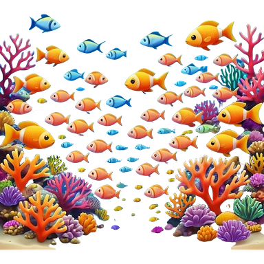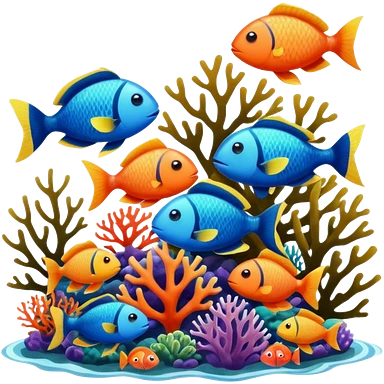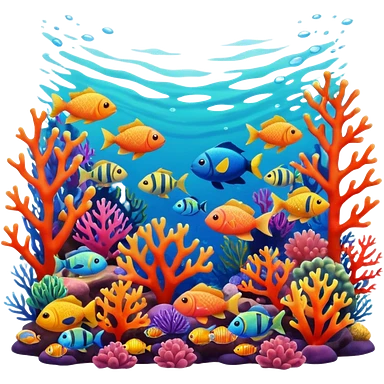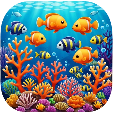A colorful coral reef with various fish emoji