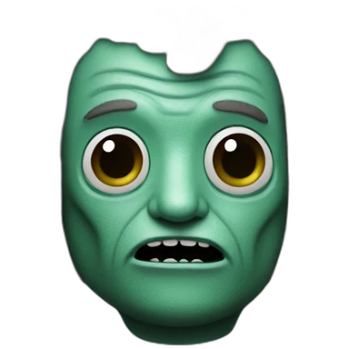 Greedy squirrel with a big pine cone balancing on its head, showing a strange creepy expression, hungry looking emoji