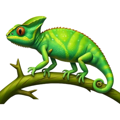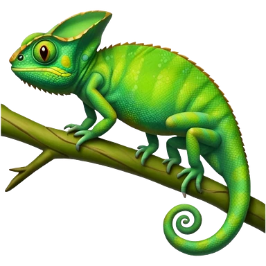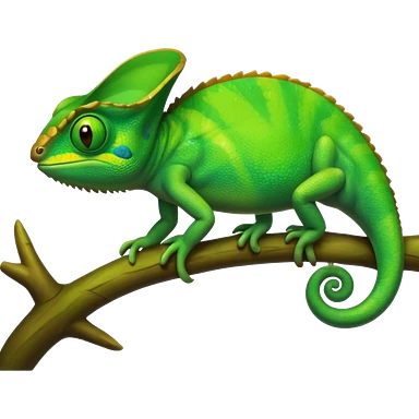 green chameleon looking at me, make it look like an emoji and standalone, with no branch emoji