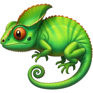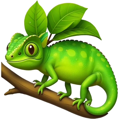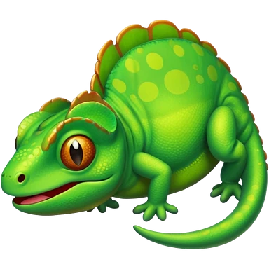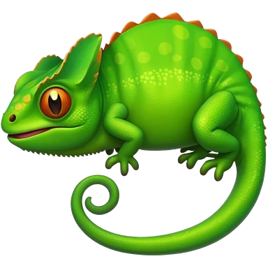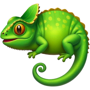 green chameleon looking at me, make it look like an emoji and standalone, with no branch. Make it very cute and like an animation. Make it look as ut emoji