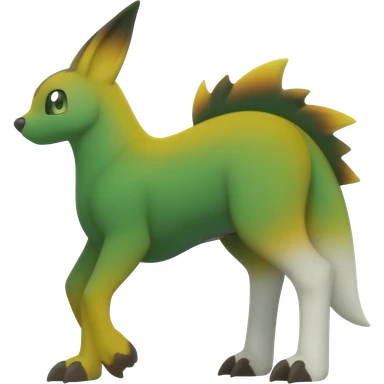 Green-yellow-brown-black-white-gradients Trico-Sergal-Furret-Vernid-fusion-Fakemon-animal-hybrid-creature, full body emoji