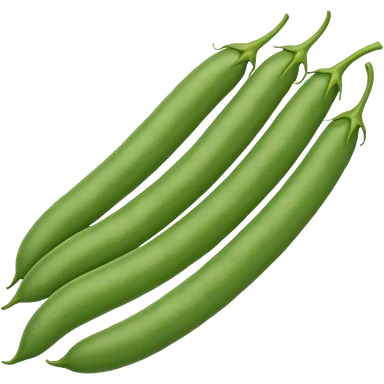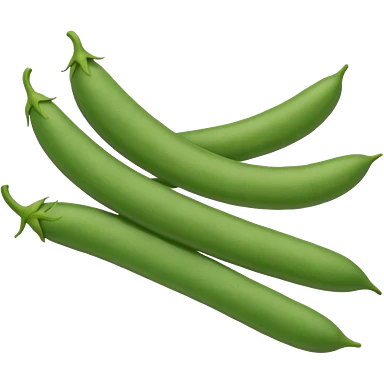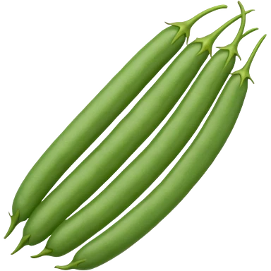 2 to 4 whole green beans (haricots verts), slightly curved, smooth vibrant green skin, pointed ends, fresh and crisp, subtle sheen, natural texture, tiny stem tips, no leaves, no plate, transparent background, emoji scale emoji