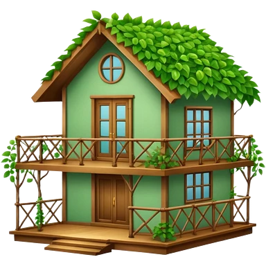 Beautifull Green house made with leaves, branches and a balcony emoji